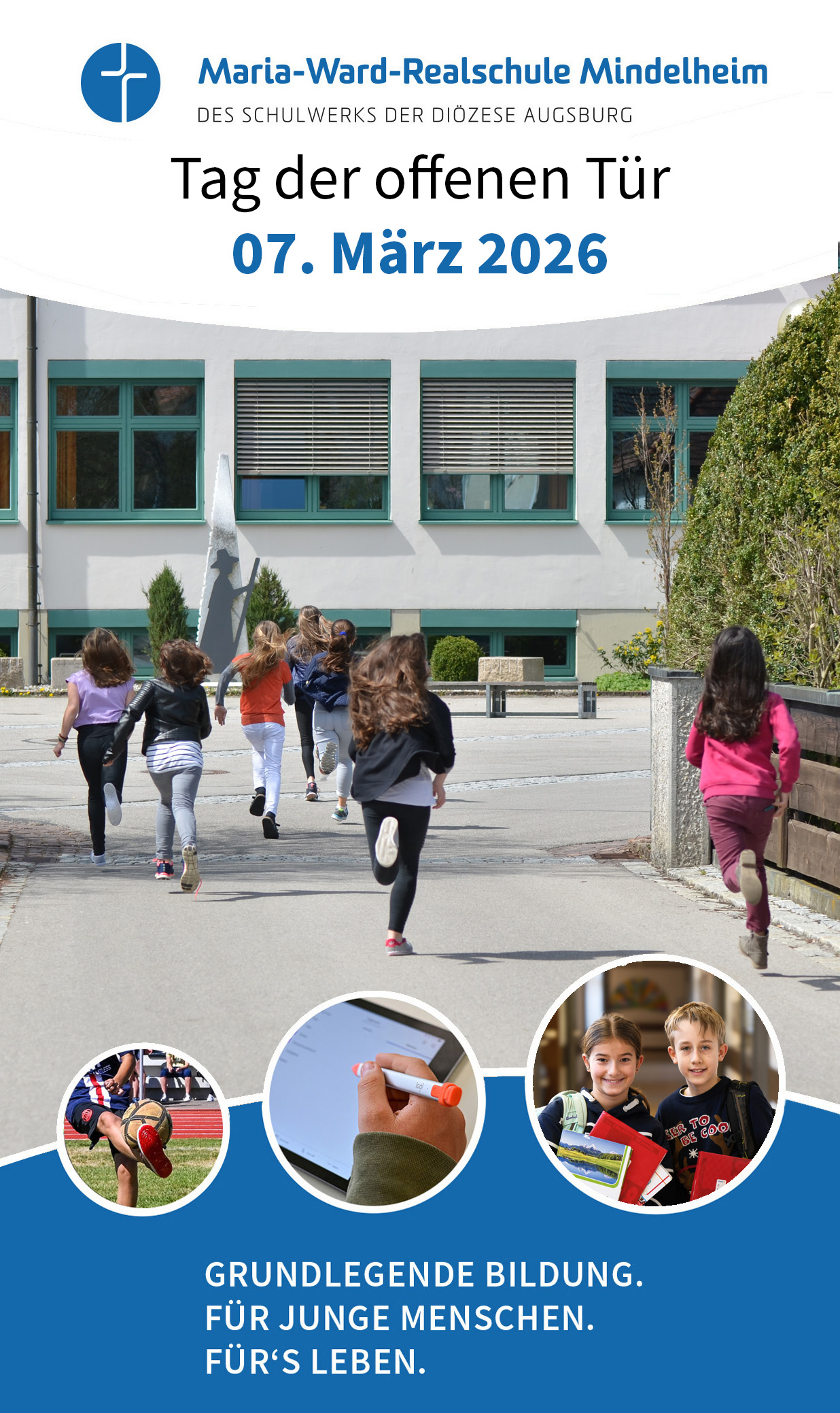 Die Maria-Ward-Realschule Mindelheim wird am Mittwoch, den 02.04.2025 von 14.00 Uhr bis 15.45 Uhr einen Schnupperunterricht in den Ganztagsangeboten anbieten, zu dem Schülerinnen und Schüler der Grundschulen zusammen mit ihren Eltern ganz herzlich eingeladen sind. Dabei werden das Modell „GanzTakt+: Forscherklassse“ und die offene Ganztagesschule vorgestellt.